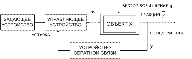 Разнообразие видов объектов и соответствующих задач управления предполагает возможность широкого спектра вариантов их математического описания. В нашем курсе ограничимся рассмотрением только основных способов математического моделирования, которое на сегодняшний день являются по ряду причин наиболее применимыми в теории и практике управления техническими объектами. Для описания общих закономерностей управления и соотношений между ними рассмотрим общий случай структуры САУ с обратной связью.