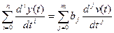 В уравнении 3 коэфициенты a0,a1,…,an, b1.,b2,…,bm- для стационарных САУ это константы. Это параметры системы. Стационарные САУ при постоянных внешних воздействиях описываются уравнениями, не зависящими в явном виде от времени t, т.е. свойства стационарных САУ во времени не меняются. Стационарные линейные САУ описываются линейными уравнениями с постоянными коэффициентами. Нестационарные линейные САУ описываются линейными уравнениями с переменными коэффициентами (САУ с переменными параметрами). Согласно уравнению (3) в общем случае можно представить математическую модель линейной стационарной САУ в следующем виде: