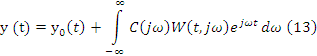 e(jw)= Выражения 11 и 11’ это есть обратное и прямое соответственно интегральное преобразование Фурье, а C(jw) это спектральная плоскость или спектральная функция сигнала V(t). С учётом этого 11 и 11’ можем записать, что формула (12) W(t,jw)