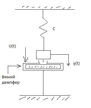 Рассмотрим простейшую механическую систему с упругим элементом(пружиной), массой и вязким демпфером. Структурная схема такой системы представлена на рисунке: Рисунок На массу действует воздействие U(t). C – жёсткость пружины. h – коэффициент демпфирования. m – масса груза. U(t) –возмущающая сила. Y(t) – перемещение массы m. Составим физическое описание системы. На основе 2-го закона Ньютона имеем: Формула(16,17)