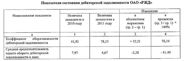 Показателями состояния дебиторской задолженности ОАО «РЖД являются: