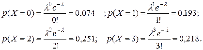 Ясно, что следующие вероятности будут только убывать, поэтому наиболее вероятное число опечаток на одной странице (мода случайной величины Х) равно 2, вероятность этого числа равна 0,251.