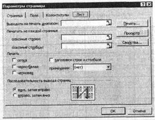 Рис. 98. Окно «Параметры страницы» с активной вкладкой «Лист»