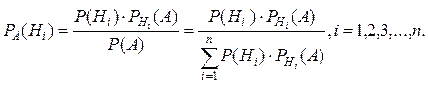 которая называется формулой полной вероятности. Используя формулы (*) и (**), можно получить формулу Байеса (формулу вероятности гипотез):