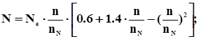 14.2 Швидкісні характеристики Швидкісна характеристика - залежність потужності N, крутного моменту Mкр, витрати палива Gт і питомої витрати палива ge від частоти обертання колінчастого вала двигуна. Розрізняють зовнішню і часткові швидкісні характеристики. Швидкісну зовнішню характеристику одержують при повному відкритті дросельної заслінки карбюратора чи при положенні рейки паливного насоса дизеля, що відповідає номінальній потужності (лінії a на малюнку 14.1). Будь-яка характеристика, отримана при неповному відкритті регулюючого органа двигуна, називається частковою швидкісною характеристикою (лінії b на малюнку 14.1). Зовнішня швидкісна характеристика дозволяє визначити максимальні показники потужності двигуна й оцінити його економічність при повних навантаженнях. Характеристику одержують у діапазоні від мінімальної стійкої частоти обертання до ~1.2nном, де nном - частота обертання, зазначена заводом-виготовлювачем для номінальної потужності. Для оцінки стійкості режиму двигуна при роботі за зовнішньою характеристикою використовують коефіцієнт пристосовності К, що дорівнює відношенню максимального крутного моменту (чи середнього ефективного тиску) при роботі двигуна за зовнішньою характеристикою до крутного моменту (чи середнього ефективного тиску), що відповідає номінальній частоті обертання вала двигуна. Для транспортних карбюраторних двигунів коефіцієнт пристосовності дорівнює 1.25 – 1.35, для транспортних дизелів 1.05-1.15, причому менші значення коефіцієнта пристосовності мають двигуни з наддувом. Швидкісний діапазон усталеної роботи двигуна оцінюється швидкісним коефіцієнтом Kc, який рівен відношенню частоти обертання, що відповідає максимальному крутному моменту, при роботі двигуна за зовнішньою характеристикою, до частоти обертання на номінальному режимі. Швидкісний коефіцієнт у карбюраторних двигунів складає 0.45 – 0.55, а в дизелів 0,55 – 0,70 (при наддуві до 0.8). З достатнім ступенем точності зовнішні швидкісні характеристики можна побудувати за результатами теплового розрахунку для режиму максимальної потужності двигуна. Діапазон можливих змін швидкості обертання лежить в інтервалі від 600 об/хв до 1.2nном для карбюраторних двигунів і від ~350 об/хв до nном для дизелів. Залежність потужності двигуна від швидкості його обертання можна виразити наступним узагальненим вираженням