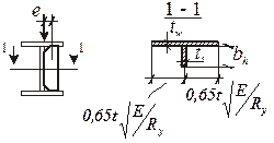 Ребра жесткости рекомендуется прикреплять односторонними швами. При эксплуатации балок в средне или сильно агрессивных средах и при динамических нагрузках (1-а группа конструкций) обязательны двусторонние швы. В сварных балках 2-4 групп конструкций возможно использование односторонних поясных угловых швов. Ребра жесткости необходимо размещать со стороны, противоположной швам. Одностороннее ребро жесткости, размещенное в месте приложения сосредоточенной нагрузки, рассчитывается как внецентренно-сжатый стержень.