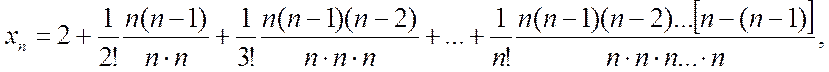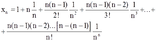 Рассмотрим пример последовательности, для исследования сходимости которой будет использована вышеуказанная теорема (п. 2.7.) о пределе монотонной последовательности. Пусть дана последовательность Используя формулу бинома Ньютона