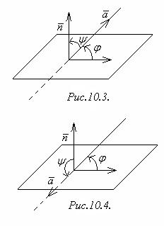 Поскольку вектор = (А1;В1;С1) образует с направляющим вектором = (а1;а2;а3) угол y = - j или y = + j (Рис.10.3 и Рис.10.4), то cosy = cos(- j) или cosy = cos(+ j), откуда cosy = sinj или cosy = - sinj.