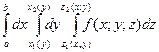 Замечание 2. Если область V является стандартной в направлении каждой координатной оси и её проекции на координатные плоскости являются стандартными в направлении каждой соответствующей оси, то пределы интегрирования в трёхкратном интеграле можно расставить шестью различными способами. Замечание 3. Если V ─ прямоугольный параллелепипед, определяемый неравенствами