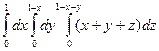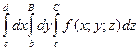 По аналогии с двойным интегралом вводится понятие тройного интеграла. Рассмотрим ограниченную замкнутую пространственную область V и определённую в ней непрерывную функцию
