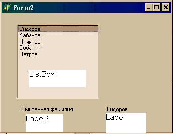 Для набора фамилий активизируем текстовый редактор с помощью свойства Items. Предположим, что необходимо выбранную фамилию из списка выводить в компоненту Label.