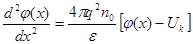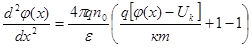 Граничные условия: x=0 х→∞ φ=Uк n=n0 (Объём полупроводника)