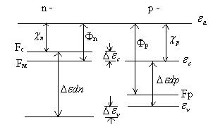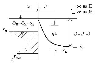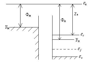 Фм и Фп – терм. Работы выхода электрона из М и П- энергия, которую нужно сообщить электрону для его перевода с уровня Ферми на уровень