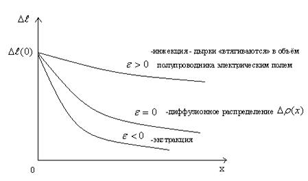 Дрейф неосновных носителей Найдём распределение ∆ρ(х) в n-типе в условиях сильного поля (диффузии нет)