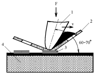 1 – ракель; 2 – трафарет; 3 – краска; 4 – основание Рис. 5.4. Принцип трафаретной печати