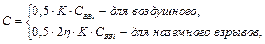 где Pmax – максимальное давление взрыва стехиометрической ГПВС в замкнутом объёме (при отсутствии данных допускается принимать в расчётах Pmax=900 кПа); C - масса горючего материала (газа, паров ЛВЖ или ГЖ), кг; Z - коэффициент участия горючего во взрыве (Z=0,5 для ГГ; Z=0,3 - для ЛВЖ и ГЖ); V –свободный объём помещения, м3(Vсв=0.8*V0, здесь V0 – полный объём помещения); ρГ,Пстх – плотность газа или пара стехиометр. состава, кг/м3; Сстх – стехиометрическая концентрация горючего материала, %(объёма); Кн – коэффициент, учитывающий негерметичность помещения и неадиабатичность процесса горения(допускается принимать Кн=3); Объём газа, вышедшего из аппарата Vа=0.01∙Р∙V, м3, где Р – давление в аппарате, кПа; V – объём аппарата, м3. Масса горючего материала С=Vа∙rГ,Пстх, кг. Избыточное давление при взрыве других ГПВС и пылей где С - масса горючего вещества, поступившего в помещение в результате аварийного вскрытия емкости (с учетом коэффициента q, а для пыли - общая масса дисперсного продукта), кг; При взрывах гибридных смесей Если в формуле массу горючего вещества заменить через