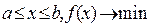 Разрешимость задач оптимизации. Приведенная выше задача оптимизации имеет решение не при любых целевых функциях и допустимых множествах. Существуют задачи, в которых невозможно найти оптимальное решение и экстремум целевой функции. Например, не существует точек минимума функции одной переменной f на множестве