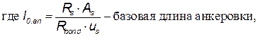 которая, в свою очередь, зависит от Rs – расчетного сопротивления арматуры растяжению; Аs и us – площади поперечного сечения и периметра анкеруемого стержня;