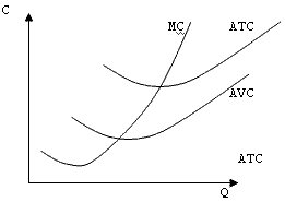 Нормальная прибыль – это минимальный доход, необходимый для того, чтобы удержать предпринимателя в данной отрасли. Нормальная прибыль является элементом неявных издержек. Если p эк. = 0, то это означает, что предприниматель получает только нормальную прибыль, которая позволяет удержаться ему в рамках данного направления деятельности. В краткосрочном периоде различают постоянные и переменные издержки. Постоянные издержки (TFC) – это денежные затраты, которые не зависят от объема выпускаемой продукции (затраты на эксплуатацию оборудования, зданий, сооружений, процент по кредиту, рентные платежи, страховые взносы, заработная плата управленцам, охрана и т.д.) Постоянные издержки являются обязательными и сохраняются даже если фирма ничего не производит, поэтому на графике постоянные издержки выражаются прямой, параллельной оси абсцисс. Переменные издержки (TVC) – это денежные затраты, изменяющиеся вместе с объемом выпуска продукта. Это расходы на сырье, вспомогательные материалы, труд и т.д. Переменные издержки изменяются пропорционально выпуску продукции, поэтому на графике кривая переменных издержек – восходящая линия. Общие издержки (T С) – это совокупность всех затрат предприятия на производство и реализацию продукции: