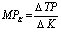 Средний продукт капитала называют также капиталоотдачей. Предельный продукт труда, МРL (marginal product of labour) показывает, на сколько изменится общий продукт при изменении труда на одну единицу, если объем используемого капитала не изменится:
