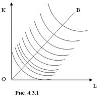 Второй аспект. Труд и капитал изменяются одновременно и в одном направлении. Зависимость между увеличением факторов производства и объемом выпуска характеризуется эффектом масштаба: 1) Положительный эффект масштаба – когда объем выпуска продукции увеличивается в большей степени, чем затраты ресурсов; 2) Постоянный эффект масштаба – когда объем выпуска продукции увеличивается в той же пропорции, что и затраты ресурсов; 3) Отрицательный эффект масштаба – когда объем выпуска продукции увеличивается в меньшей степени, чем затраты ресурсов. Эффект масштаба графически может быть показан на карте изоквант:
