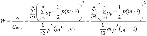 Естественно, что в качестве меры согласованности экспертов принимается отношение S/Smax, тогда имеем общую формулу (7.11):