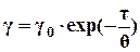 Уравнение (20) является математической моделью тела Максвелла. Наиболее интересна эта модель для мгновенной и фиксированной деформации (γ=const). Такое состояние реализуется при мгновенном растяжении модели с сохранением в дальнейшем постоянной деформации. После этого возникшее внутреннее напряжение постоянно спадает со временем (релаксирует). Изменение напряжения в этом случае описывается соотношением: