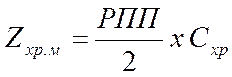 Большой размер одной партии вызывает соответствующий рост затрат по хранению товаров на складе, так как при этом увеличивается размер запаса в днях. Затраты по хранению товаров (Zхр.м) на складе определяются: