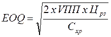 где: Схр - стоимость хранения единицы товара в анализируемом периоде. Модель EOQ позволяет оптимизировать пропорции между 2 группами затрат таким образом, чтобы общая сумма была минимальной. Математически эта модель выражается: