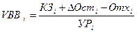 Каждый вид материальных ресурсов оказывает влияние на динамику объема производства за счет изменения: количества закупленного сырья и материалов (КЗ); переходящих остатков сырья и материалов (Ост); сверхнормативных отходов из-за низкого качества сырья, замены материалов и других факторов (Отх); удельного расхода сырья на единицу продукции (УР). Используется следующая модель выпуска продукции: