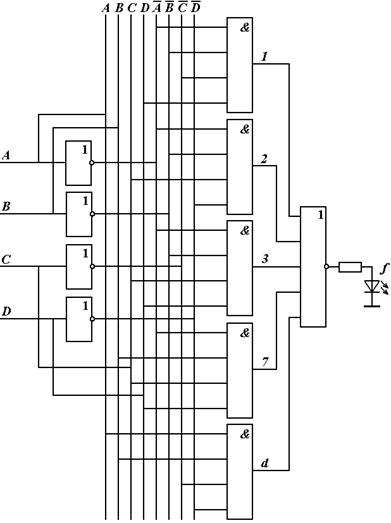 Рисунок 2.15 - Схема реализации дешифратора для сегмента f семисегментного индикатора.