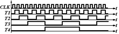 Работа счетчика происходит следующим образом. Все триггеры T1-T4 находятся в состоянии переключения, поскольку на их входы JK подана логическая 1. В начальный момент времени все триггеры сброшены и на их выводах DCBA (1 строчка таблицы истинности) присутствует логический ноль. При подаче на вход CLK (от англ. Clock) тактового импульса N =1. Переключается только первый триггер Т 1. Поскольку входы C триггеров являются инверсными переключение осуществляется при переходе от 1 к 0. Остальные триггеры не переключаются. При подаче на вход тактового импульса N =2. Переключается первый триггер Т 1. На его выходе формируется переход от 1 к 0, который переключает триггер T 2. дальнейший процесс удобно рассмотреть на временной диаграмме работы представленной на рисунке 2.24.