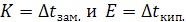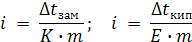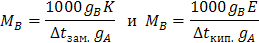При m = 1, К и Е – величины условные (рассчитаны для моляльного раствора по данным разбавленных растворов). Обе константы характерны для данного растворителя, они не зависят от природы и концентрации растворенного вещества при стандартных условиях, табулированы в справочниках. Могут быть рассчитаны по формулам: