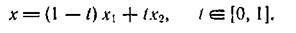 Определение 1. Множество в линейном пространстве называется выпуклым, если всякий раз из того, что , следует, что принадлежит отрезок, соединяющий и