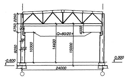 Компоновка поперечной рамы с мостовыми кранами