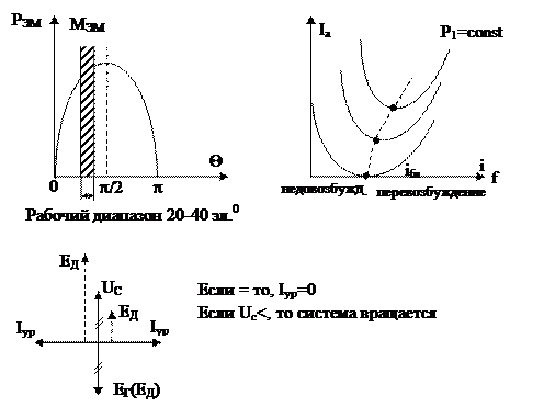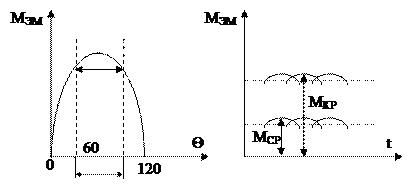Вентильный двигатель работает в режиме угловой характеристики при изменении угла Q от 600 до 1200, при этом обеспечивается среднее значение электромагнитного момента.