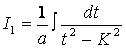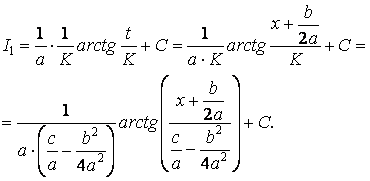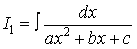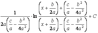 Знак плюс или минус берется в зависимости от того, будет ли выражение, стоящее слева положительным или отрицательным, т. е. будут ли корни трехчлена действительными или комплексными. Таким образом, интеграл принимает вид
