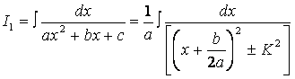 I. Рассмотрим интеграл . Преобразуем предварительно трехчлен, стоящий в знаменателе, представив его в виде суммы или разности квадратов.