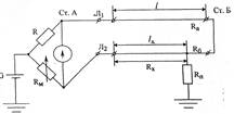 Рисунок 4.3 – Схема определения расстояния до места повреждения изоляции методом Варлея Для схемы (рисунок 4.3) запишем условие равновесия (баланса):