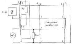 Рисунок 4.7 - Схема измерения рабочего затухания цепи односторонним методомразности уровней б) настраиваютгенератор на заданною частоту и заданное сопротивление и проводят измерение уровней; в) определяют рабочеезатухание цепи