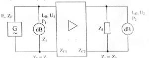 Рисунок 4.9 - Схема для измерениярабочего усиления четырехполюсника методом разности уровней Рабочее усиление определяем из значений уровней на входе Lh четырехполюсника и навыходе Lк поформуле: