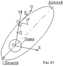 Запишем уравнение движения ИСЗ в проекциях на оси координат OXY: