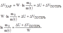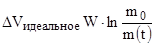 Формула показывающая, сколько нужно израсходовать топлива, чтобы сообщить КК дополнительную скорость (ΔU+ΔVПОТЕРЬ). В первом приближении,когда нам неизвестны особенности КК, параметры орбиты и т.д. можно принять, что ΔVПОТЕРЬ≈0 и тогда