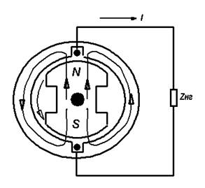 Рис. 6.3. Электромагнитная схема синхронного генератора: 1 - статор; 2 - ротор