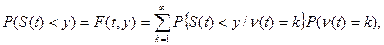 Выражение (8) – это функция распределения случайной величины, полученной путем сложения независимых случайных величин, каждая из которых подчинена показательному закону распределения с параметром a. Подставляя (7) и (8) в (6), получаем выражение, определяющее функцию F(t,y):