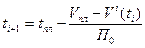 В реальных условиях П0 не остается постоянным, т.к. после каждого опроса пересматриваются все временные оценки, в том числе и оптимистические. В этом случае последующее предельное значение момента опроса ti+1 будет определяться точкой пересечения прямой, проходящей через точку кривой V(ti) и параллельной оси абсцисс, с новой оптимистической кривой, вид которой определился на i-м шаге. Тогда соотношение (1) для этого случая запишется так: