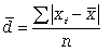 Среднее линейное отклонение d, которое вычисляют для того, чтобы учесть различия всех единиц исследуемой совокупности. Эта величина определяется как средняя арифметическая из абсолютных значений отклонений от средней. Так как сумма отклонений значений признака от средней величины равна нулю, то все отклонения берутся по модулю. Формула среднего линейного отклонения (простая)