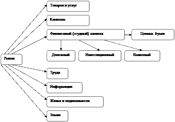 Структурные элементы, вычлененные по объектам рынка, имеют не только общие черты, свойства, но и самостоятельное значение. В то же время каждый из них имеет особую внутреннюю организацию, особое ценообразование, специфические спрос и предложение, свою конкуренцию, присущие только им институты и инфраструктуру (биржи, банки, аукционы, тендоры, способы транспортировки, охраны, складирования и др.). Например, на первой стадии товары и услуги могут реализоваться на товарно-сырьевой бирже, ценные бумаги – через фондовые биржи, рынку труда присуща биржа труда. Несмотря на различие внутренней организации, структурные элементы рынка по объектам образуют единую систему, единый живой организм. Малейший сбой в функционировании хотя бы одного элемента по цепной реакции передается на весь организм рынка. Например, в настоящее время при неразвитом рынке земли в российской экономике создает дефицит продовольственных товаров отечественного производства. Это, в свою очередь, увеличивает валютные затраты на закупку продовольствия за рубежом, в то время как эти средства могли бы использоваться в качестве инвестиции в отечественную промышленность и сельское хозяйство. Отсутствие доступа широких слоев населения к кредитам тормозит увеличение предложения товаров широкого потребления, нагнетает спрос на потребительские товары, способствует сохранению высоких курсов иностранных валют по отношению к национальной денежной единице. Элементы рынка неодинаковы по своему значению и происхождению. После разложения натурального хозяйства первым возник рынок предметов потребления, который имеет главное экономическое значение. К рынку товаров и услуг относятся рынки продовольствия, одежды, обуви, легковых автомашин и др. без развития рынка теряется цель общественного производства. От состояния потребительского рынка зависит уровень жизни населения. Устойчивость денежного обращения и социально-политическая стабильность общества. Особое место занимает рынок жилья и другой недвижимости. С развитием мореплавания расширяется торговля и зарождается финансовый рынок. В современных условиях функционирования финансового рынка (ссудного капитала) заключается в обеспечении перелива капитала из одной отрасли в другую. Внутри финансового рынка, в свою очередь, выделяется денежный рынок, который состоит из предложения и спроса на деньги. Их равновесие составляет ставка процента – цена денег. Рынок ценных бумаг. Объекты этого рынка подразделяются на два вида: свидетельства о собственности и свидетельства о займе. К первой группе относятся акции, акционерные сертификаты, опционные свидетельства, финансовые фьючерсы, ордера, права или варранты, ваучеры, коносаменты и т.п. Вторую группу ценных бумаг образуют облигации, векселя, депозитные и сберегательные сертификаты, чеки, различные государственные и муниципальные долговые обязательства. На российском рынке ценных бумаг функционируют пока далеко не все из перечисленных видов ценных бумаг и акций. Посредниками на рынке ценных бумаг являются брокеры, инвестиционные дилеры и маклеры. Основной задачей рынка ценных бумаг является обеспечение более полного и быстрого сбора сбережений в инвестиции по цене, устраивающей покупателя и продавца. Организационной формой рынка ценных бумаг является 