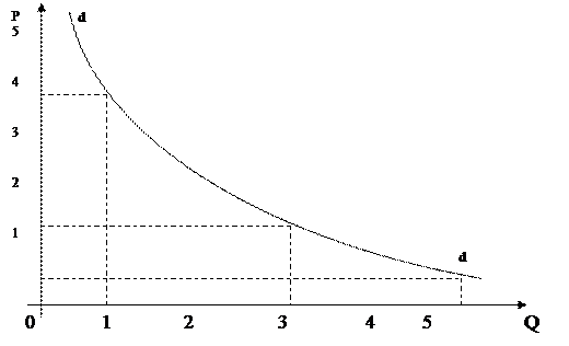 Линия dd, изображенная на рисунке 5.1. получила название линией спроса ( demand curve ). Причем в микроэкономическом анализе она колеблется от бесконечного до нулевого наклонов, а в обычном анализе имеет отрицательный наклон (см. рис. 5.5.) Линия спроса имеет два свойства.