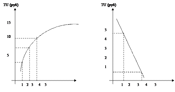 а) Общая полезность б) Предельная полезность Рис. 5.9. График изображения полезности в денежных единицах